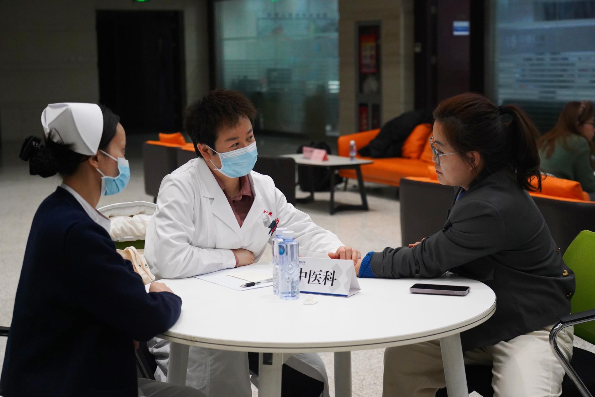 义诊现场暖意浓浓,来自白鸟湖医院心血管内科、综合内科、高血压科、妇产科、中医科的专家团队,早早搭建起专业诊疗咨询台,为职工提供“一对一”精准服务。针对办公楼员工久坐少动的职业特点,专家们聚焦高血压、心脑血管疾病等常见问题,细致问诊查体、解读体检报告,结合职工具体情况给出个性化饮食建议、用药指导。同时,回应员工减脂减重的普遍需求,提供科学合理的调理方案。现场中医脉诊、妇科保健服务专区前人头攒动,专家们耐心解答慢性病管理、女性健康养护、冬季养生调理等疑问,用专业医术为职工健康保驾护航。